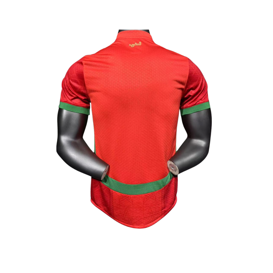 Las camisetas de la selección de Marruecos 25-26 disponible en versión jugador presenta escudo, logo y detalles termosellados que garantizan durabilidad y acabado profesional. Con una tela semi alicrada, ofrece un ajuste ceñido al cuerpo. Se recomienda elegir una talla más de la habitual para asegurar el tallaje adecuado.