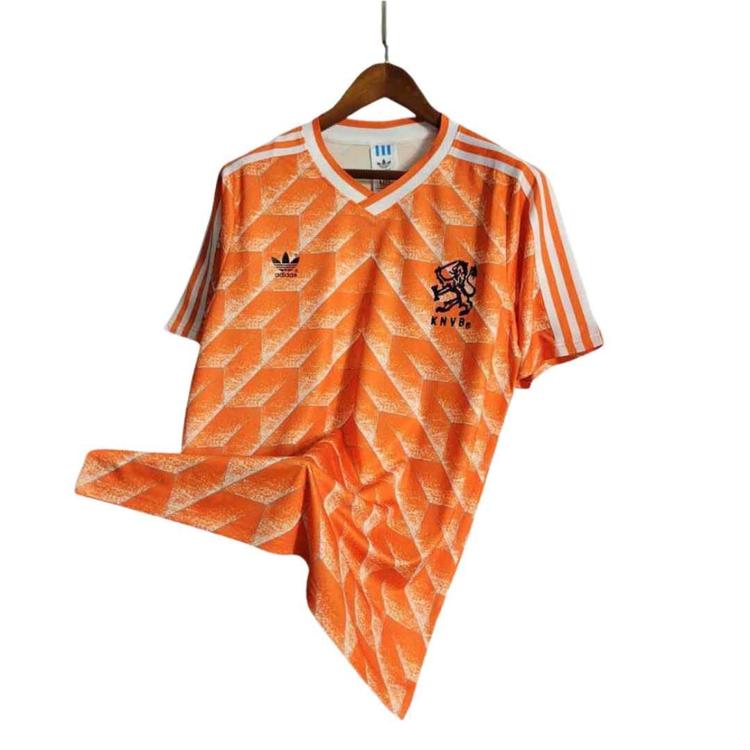 Lleva el espíritu de 1988 con esta camiseta retro de los Países Bajos. Con un diseño clásico y colores vibrantes, es perfecta para quienes quieren destacar con estilo y un toque divertido. Puede pedir su talla habitual.